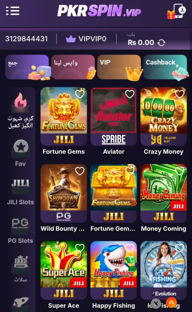 Complete Game List in Pkrspin APK
